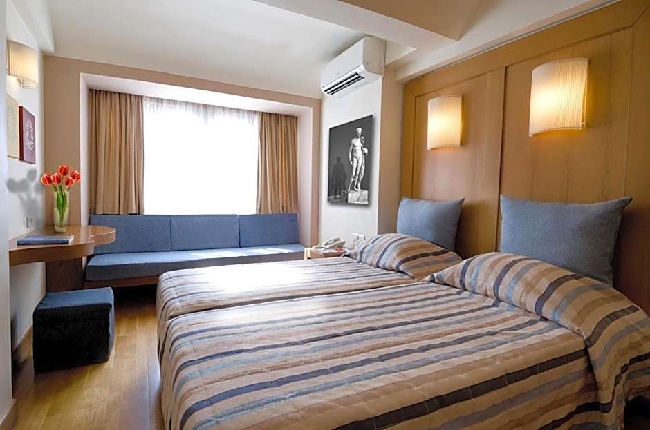Located at the back side of the hotel, on lower floors, this air-conditioned room has wooden floors, satellite TV and mini fridge. It includes a marble bathroom with free toiletries and shower or bath, and features a large window.